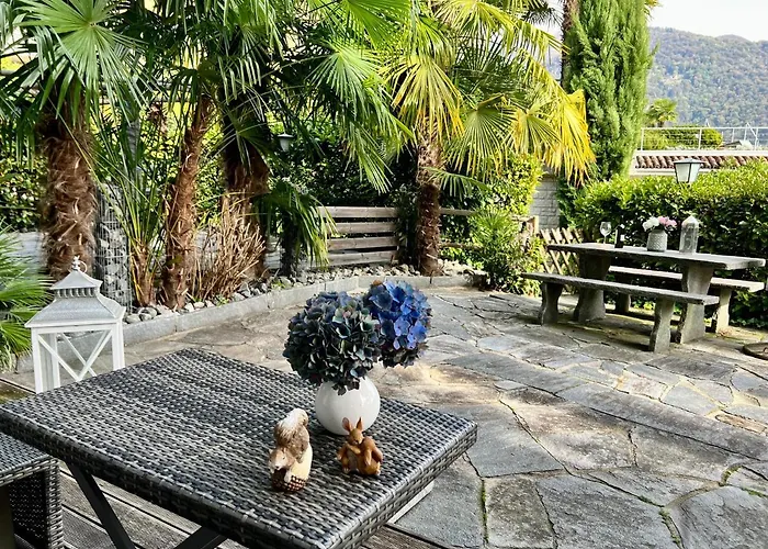تضمّ Wohnung Mit Aussicht Auf Lago Maggiore & Pool التراس، وتطلّ على الحديقة.